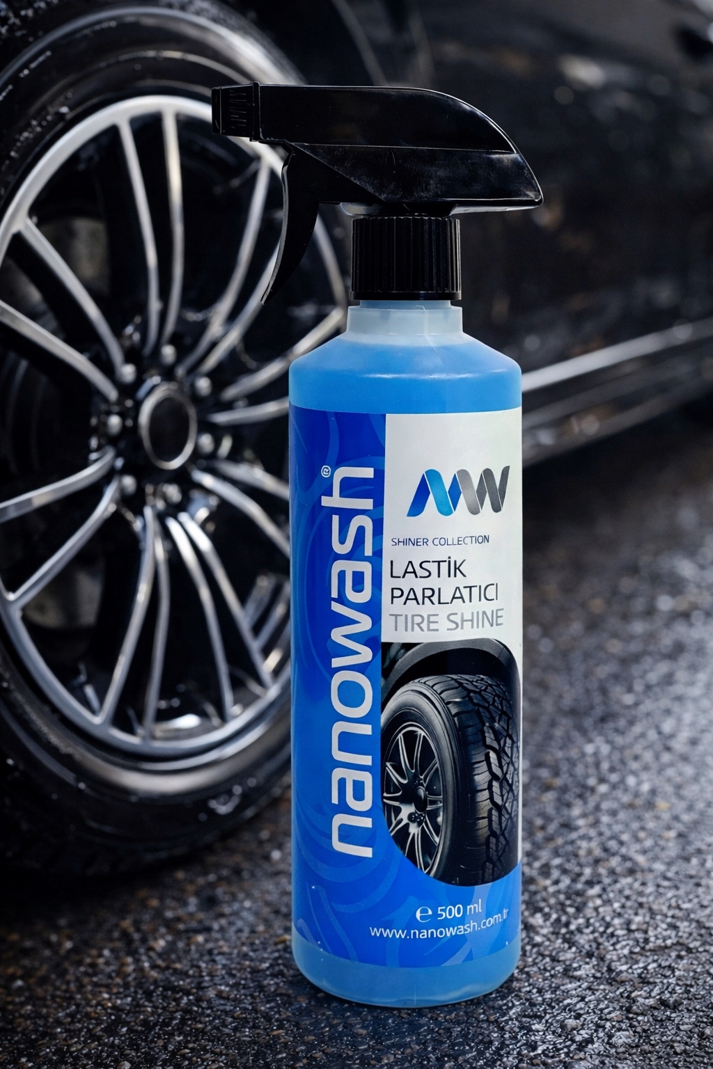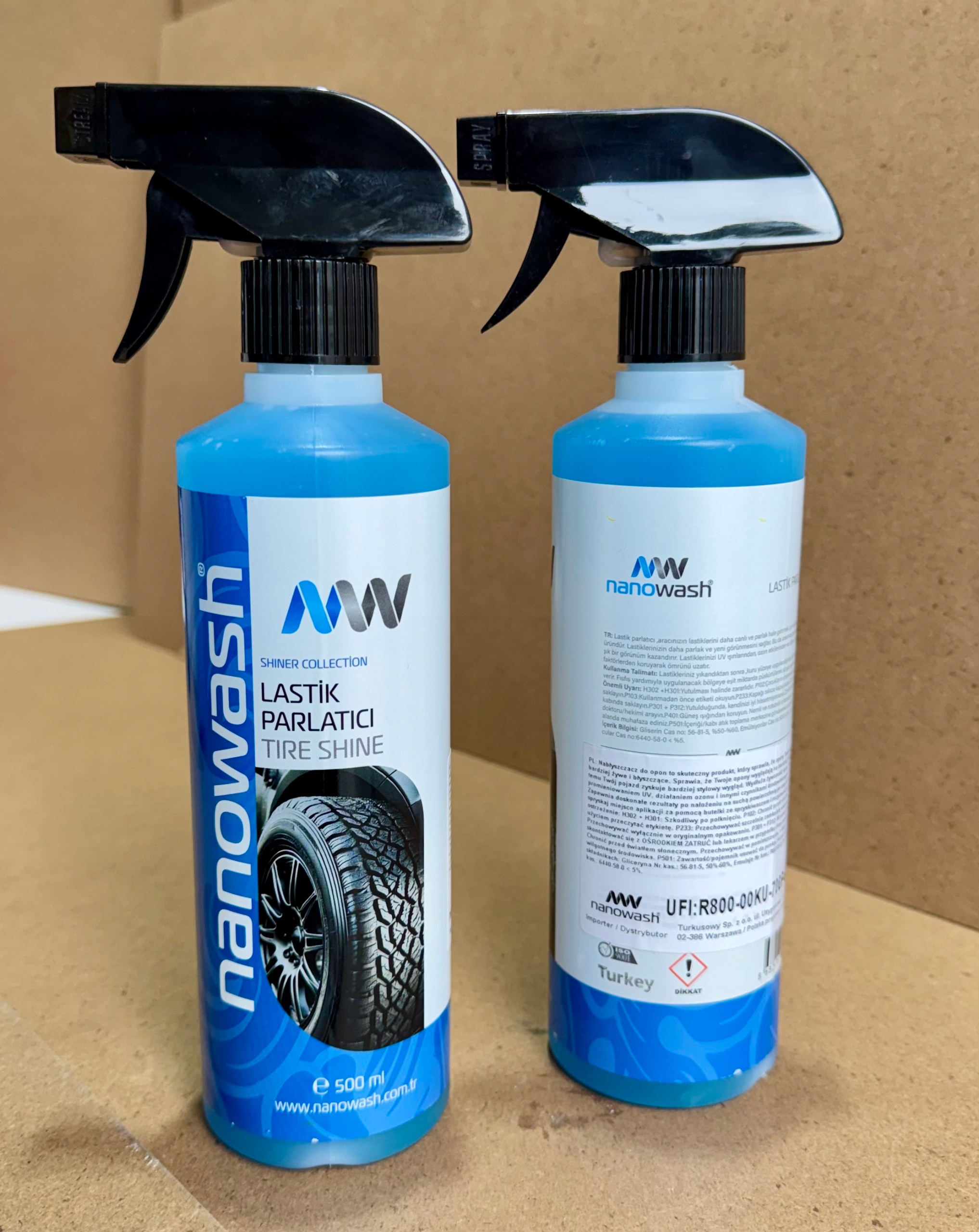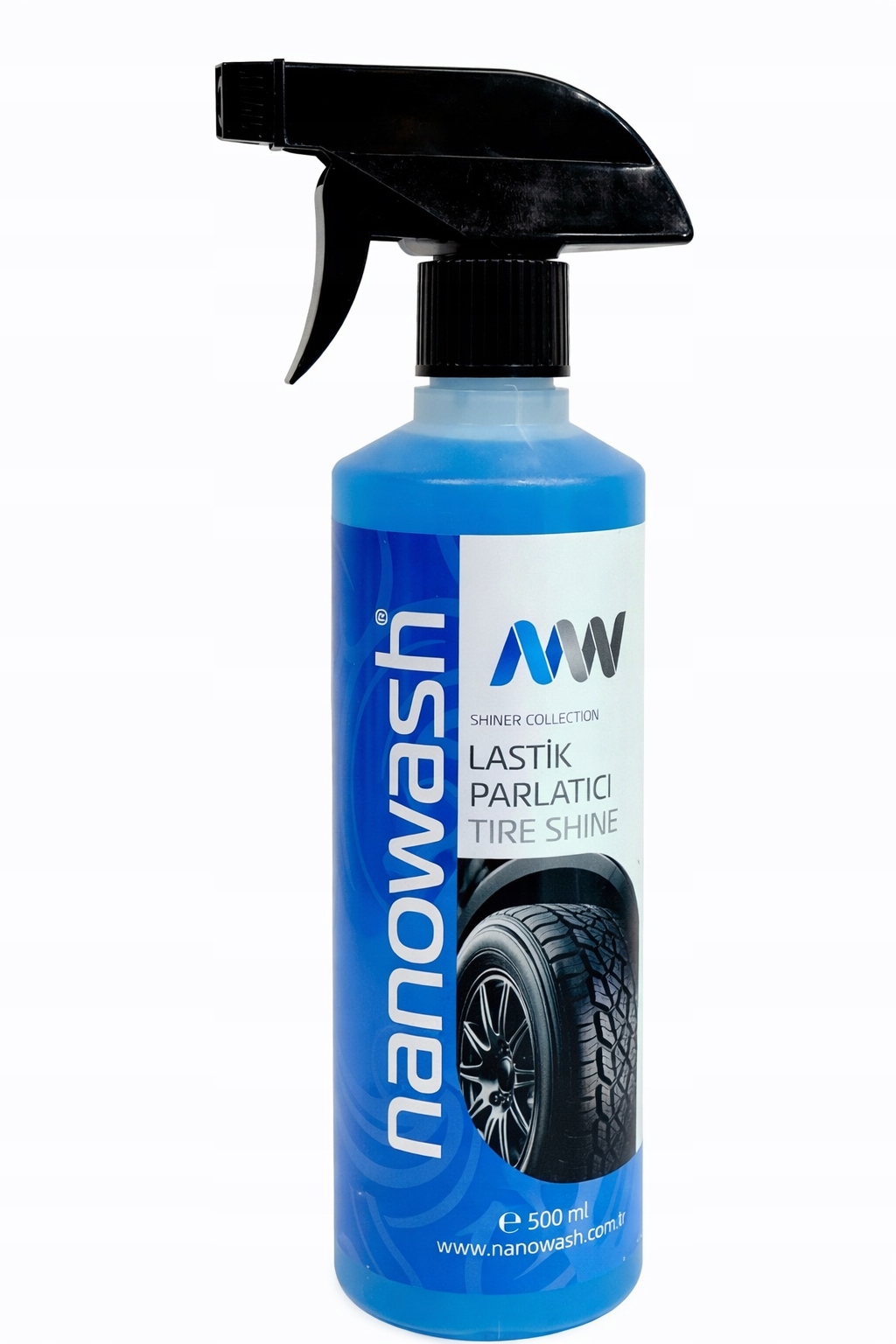 Nanowash Nabłyszczacz Opon Spray Premium 500 ml to profesjonalny preparat do pielęgnacji opon samochodowych. Dzięki specjalnej formule nadaje oponom intensywny połysk i głęboką czerń, przywracając im efekt „jak nowe”. Spray tworzy na powierzchni opony ochronną warstwę, która pomaga odprowadzać wodę i zmniejszać osadzanie się brudu.