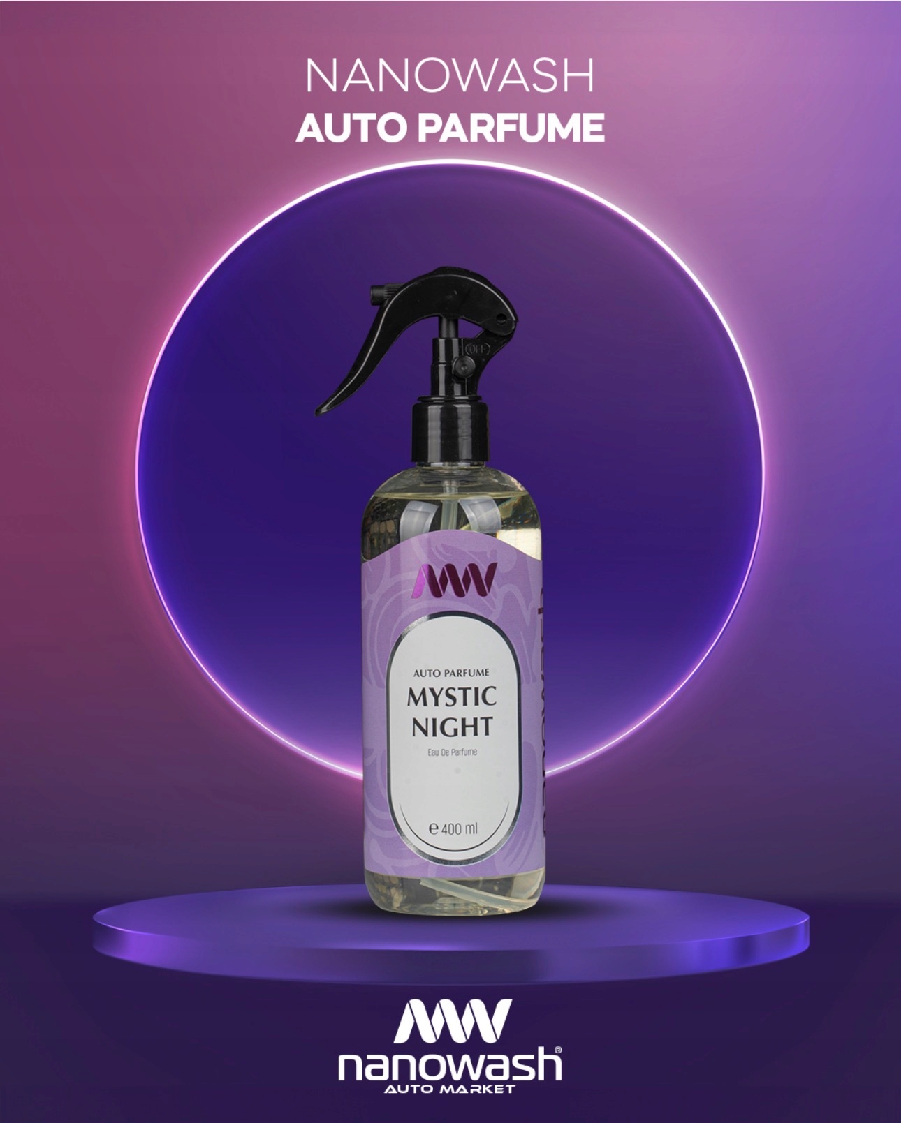 Nanowash Perfum Mystic Night Intense 400 ml to intensywny zapach do samochodu i pomieszczeń, który dzięki ulepszonej, specjalnej formule skutecznie neutralizuje nieprzyjemne zapachy, pozostawiając przyjemny, trwały aromat.