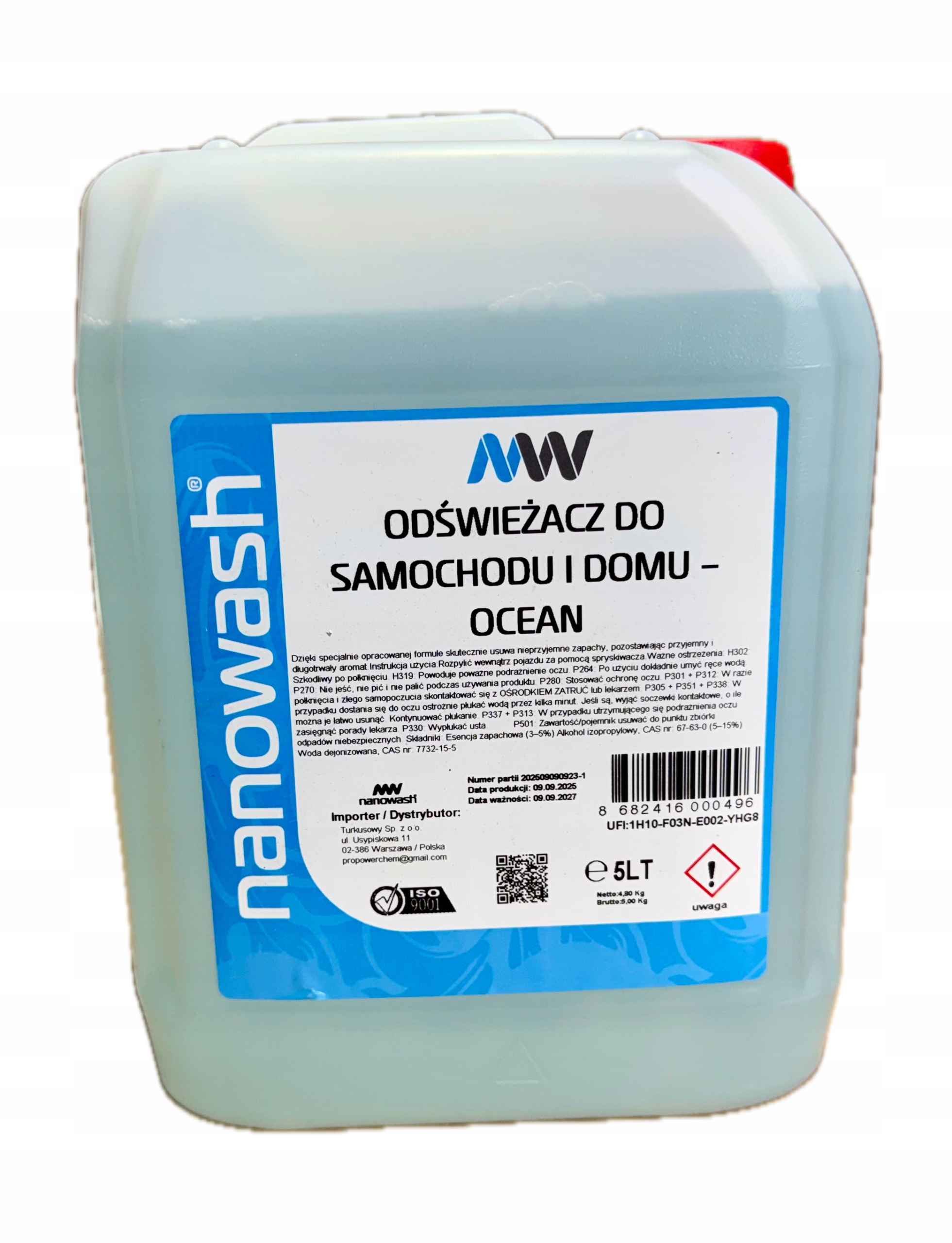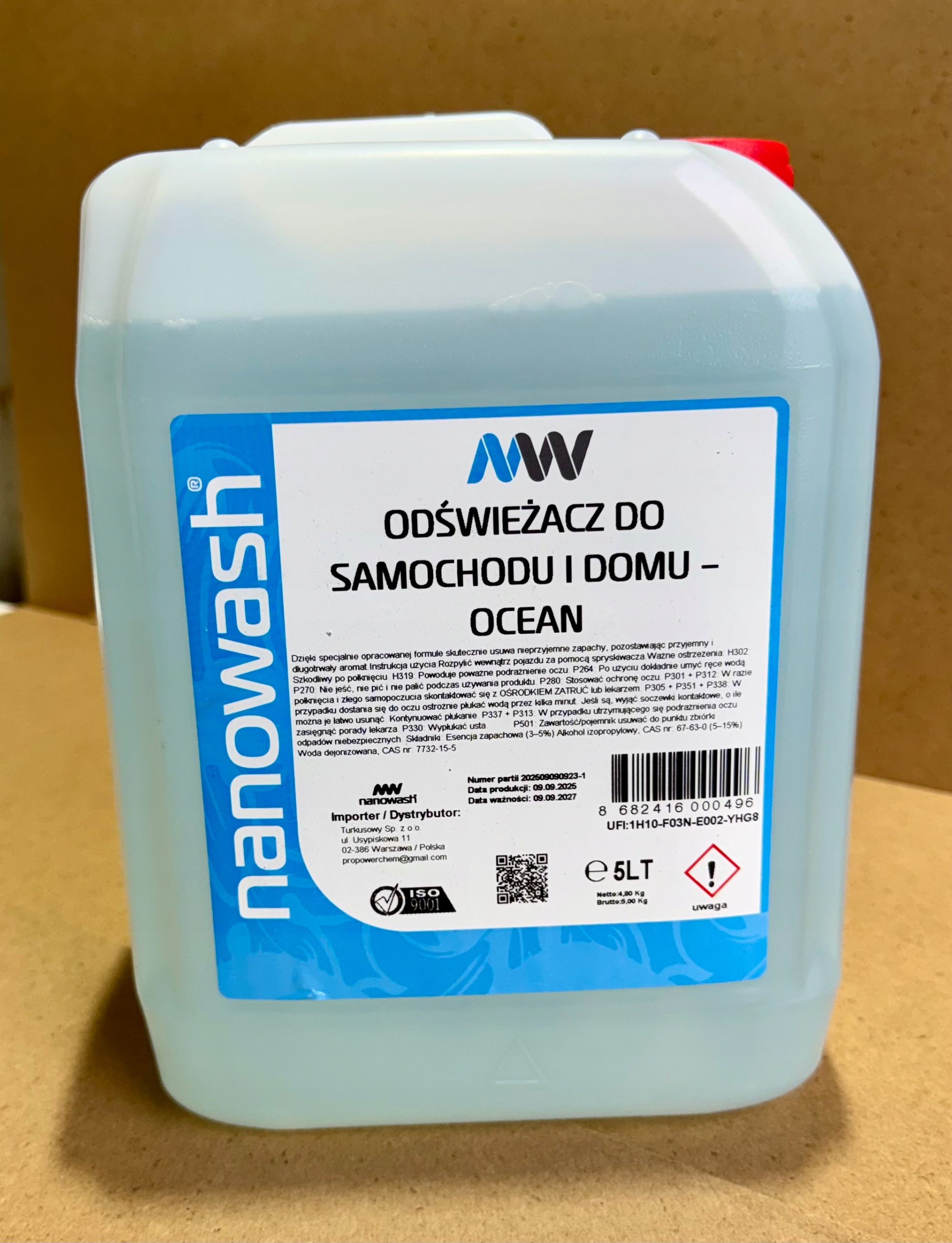 Profesjonalny perfum samochodowy marki Nanowash – Ocean Intense, przeznaczony do długotrwałego odświeżania wnętrza pojazdów. Zapewnia intensywny, świeży zapach inspirowany morską bryzą. Idealny do myjni samochodowych, studiów detailingu oraz zastosowań profesjonalnych.
