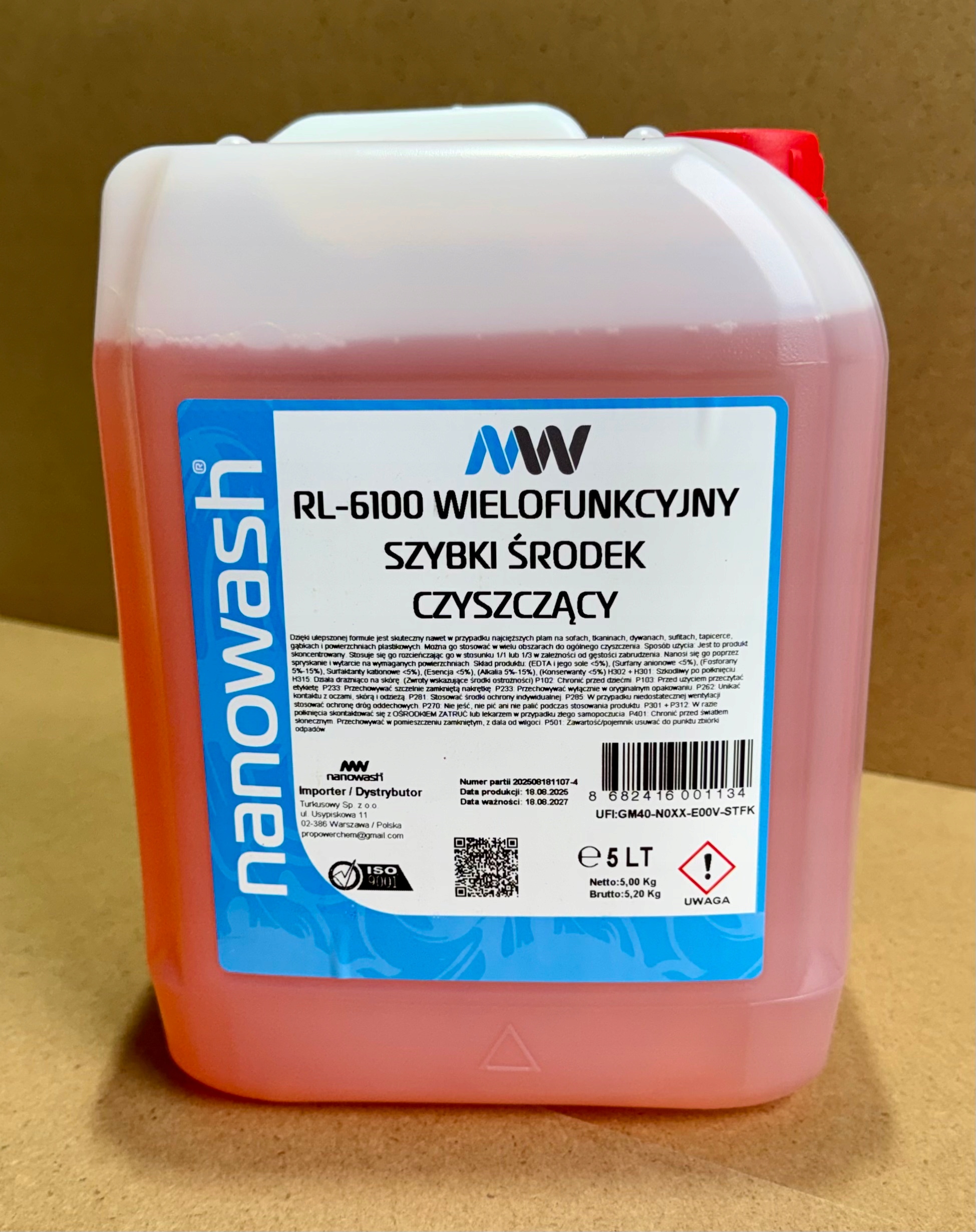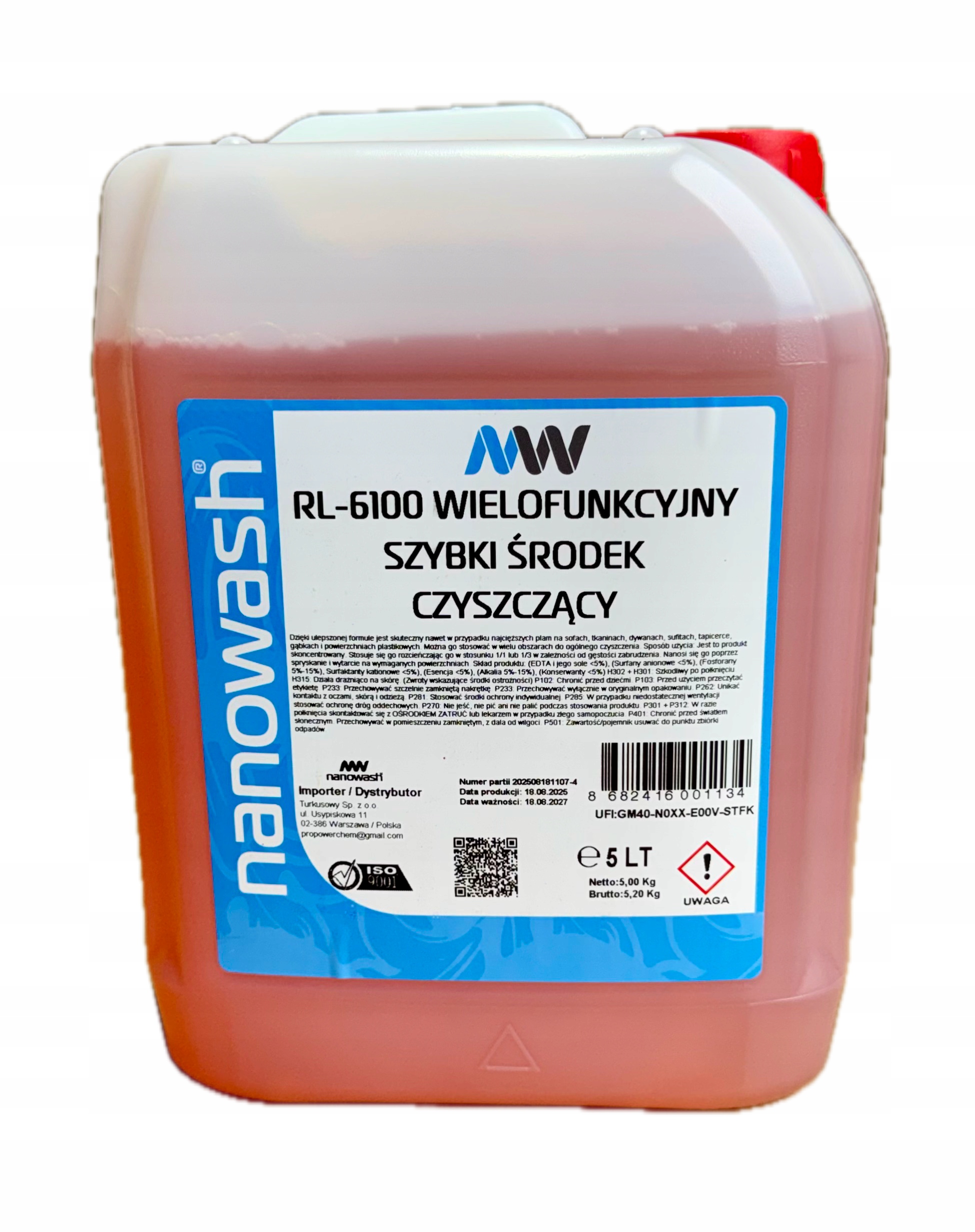 Profesjonalny uniwersalny środek czyszczący (APC) marki Nanowash – RL-6100 Fast, przeznaczony do skutecznego usuwania tłuszczu, brudu i osadów z różnych powierzchni. Szybko działająca formuła zapewnia efektywne czyszczenie przy zachowaniu bezpieczeństwa dla czyszczonych elementów, przy prawidłowym stosowaniu. Produkt w formie koncentratu, idealny do zastosowań profesjonalnych i detailingowych.