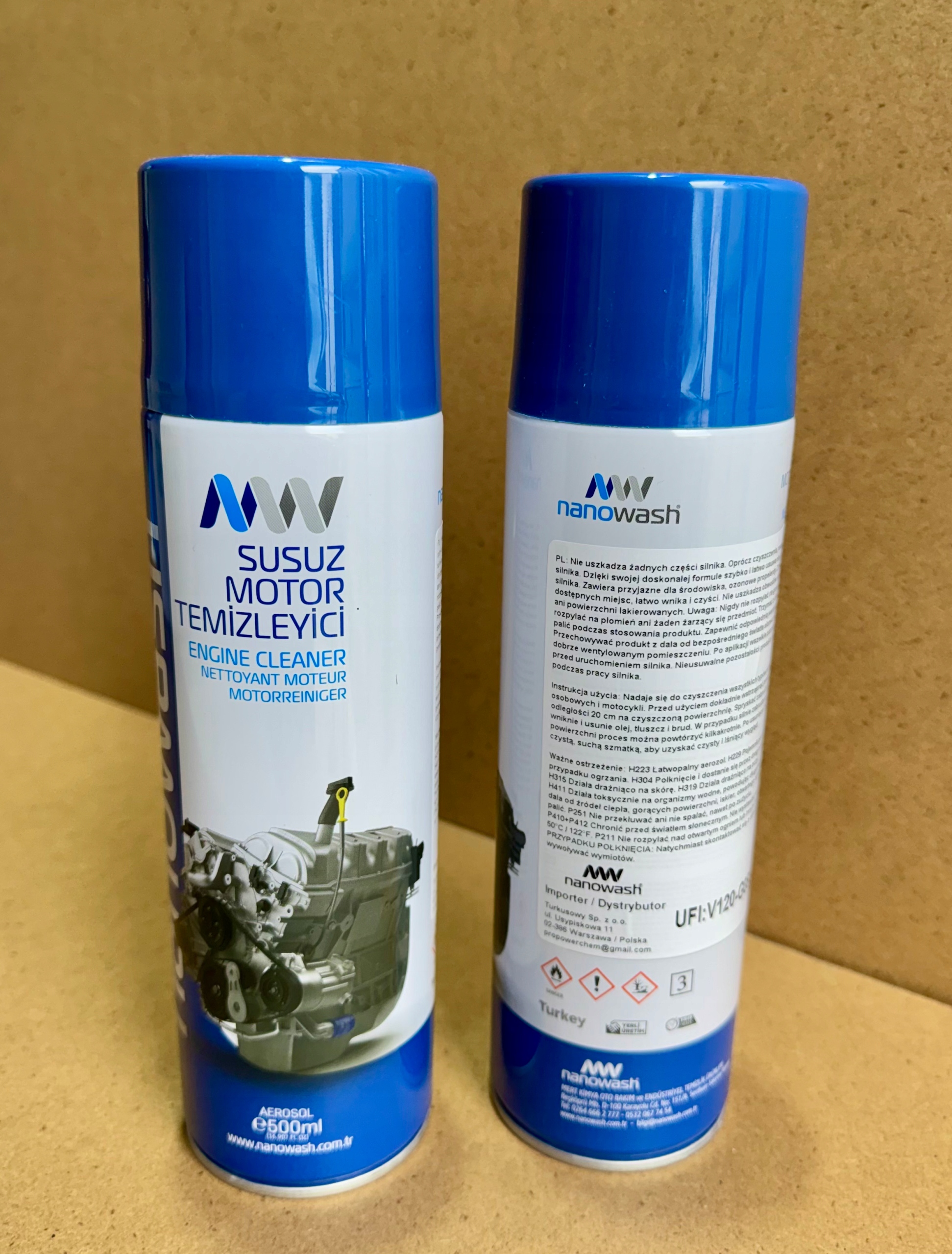 Nanowash Bezwodny Środek do Czyszczenia Silnika to skuteczny preparat w aerozolu przeznaczony do szybkiego i bezpiecznego czyszczenia elementów silnika. Produkt nie wymaga użycia wody i nie uszkadza żadnych podzespołów silnika.